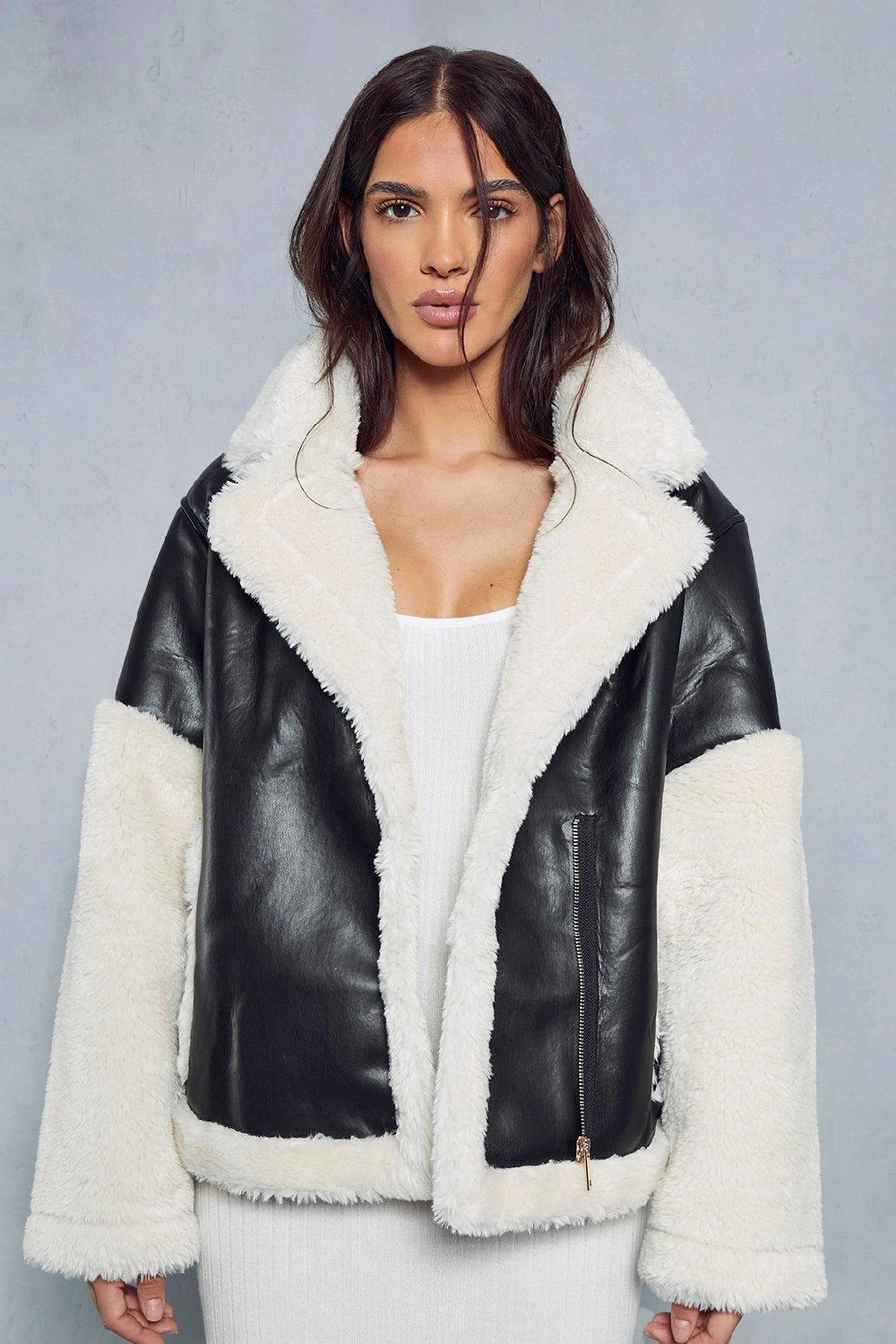 Contrast Borg Detail Aviator Jacket