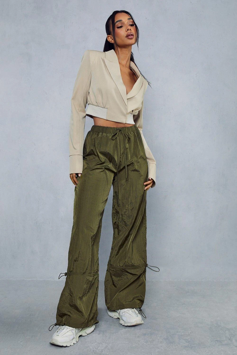 Elastic Cuff Detail Parachute Cargo Trouser