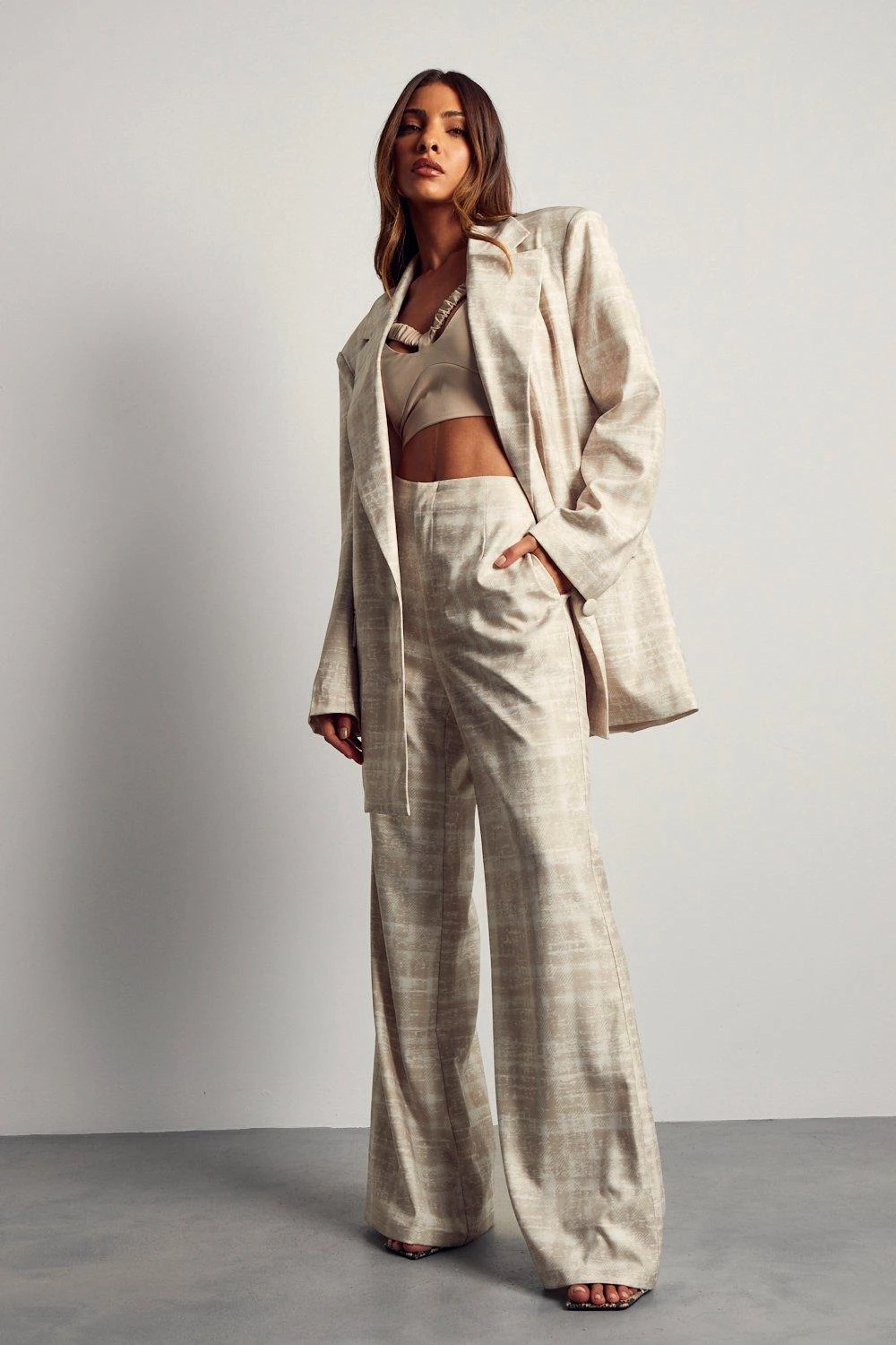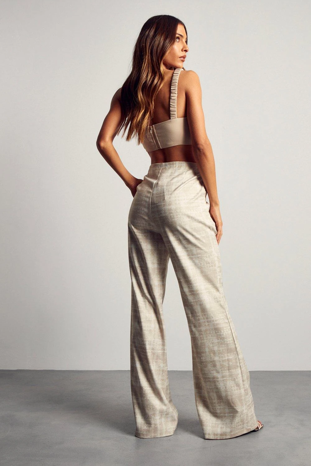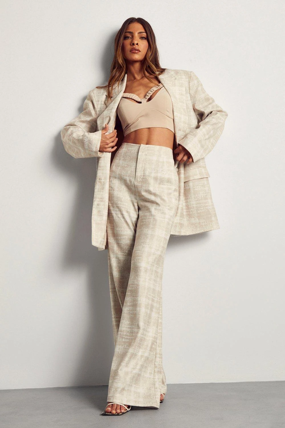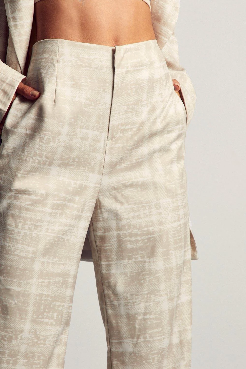 High Waisted Flared Checked Trouser