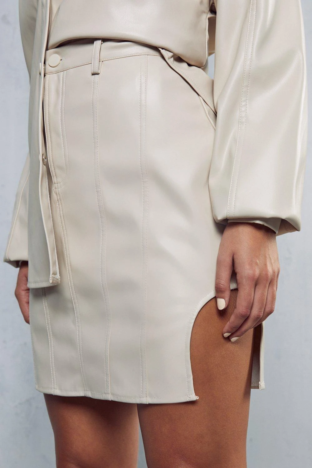 Leather Look High Side Mini Skirt