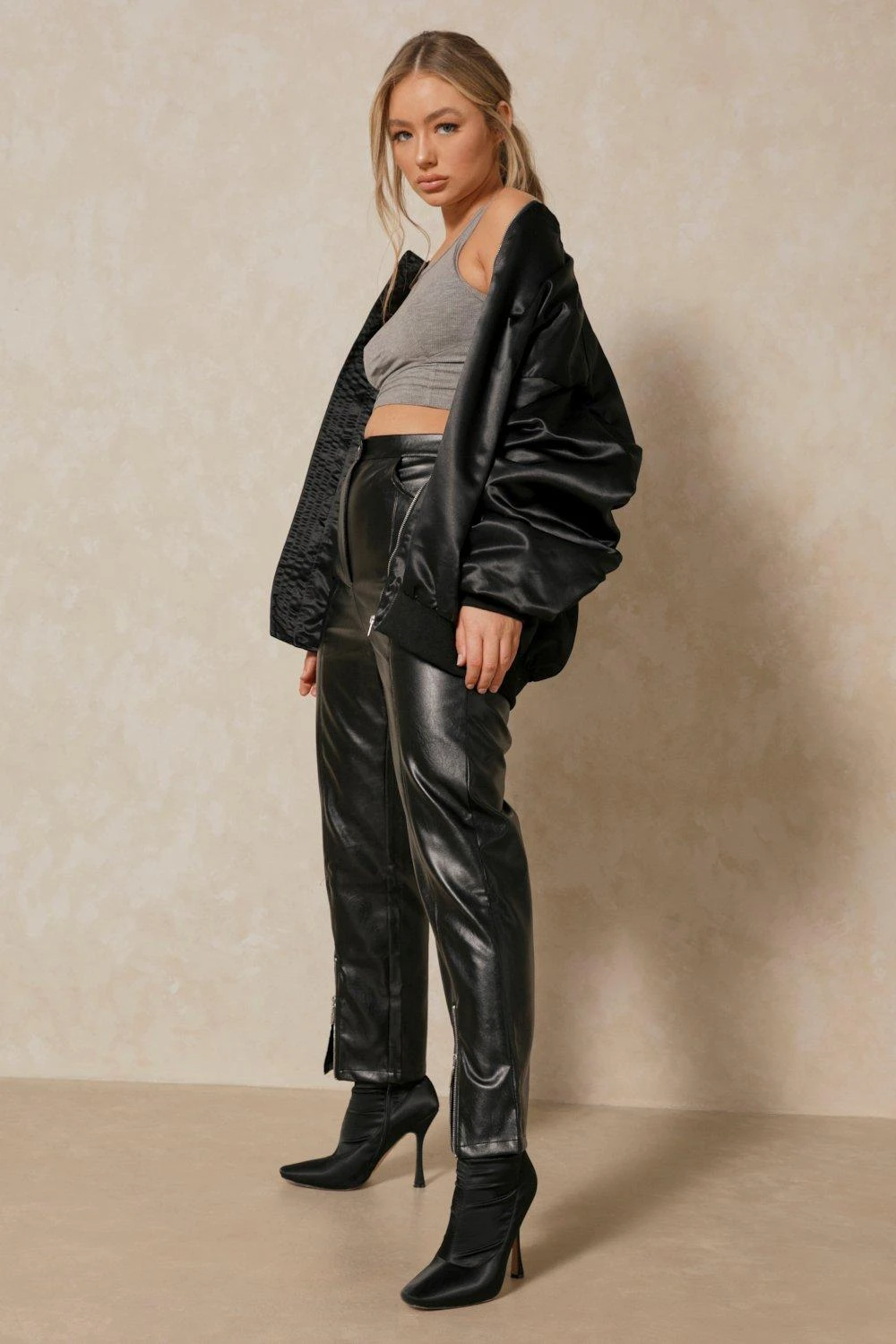 Leather Look Zip Detail Trouser