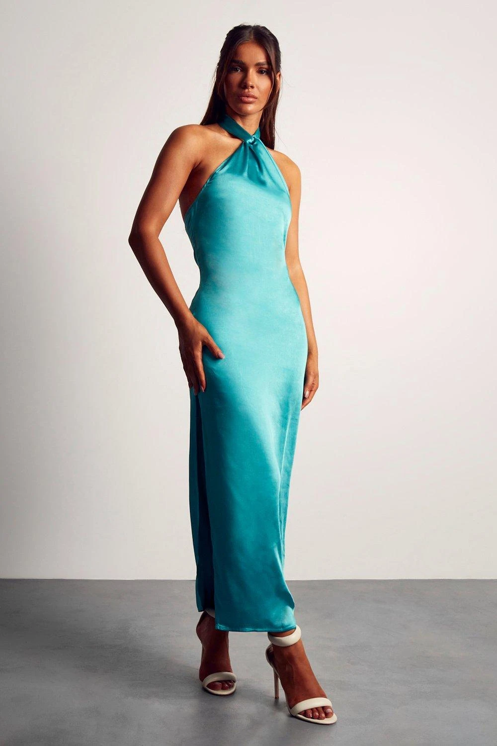 Satin Twist Neck Backless Midaxi Dress