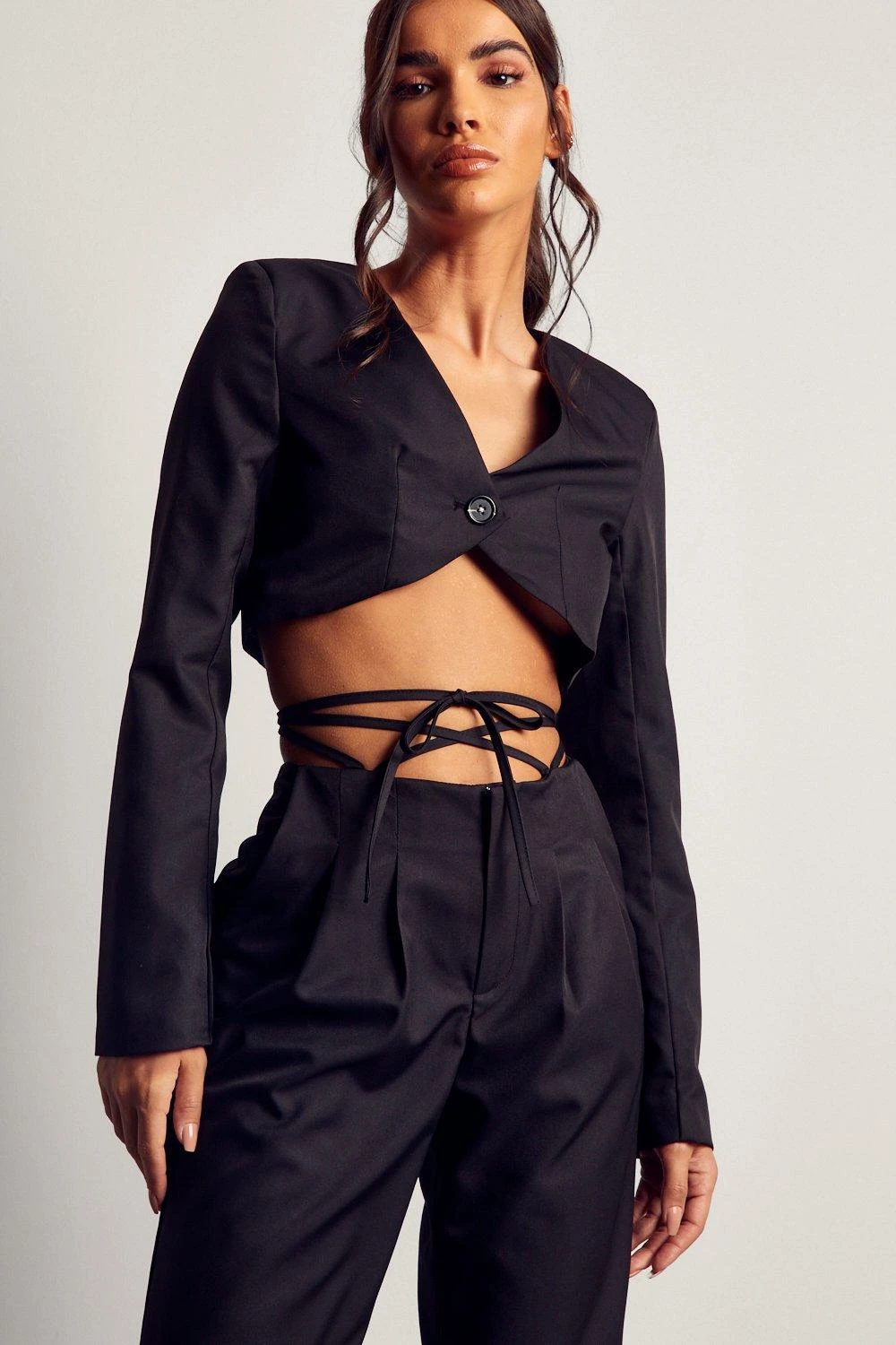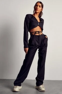 Tie Waist Detail Wide Leg Trousers