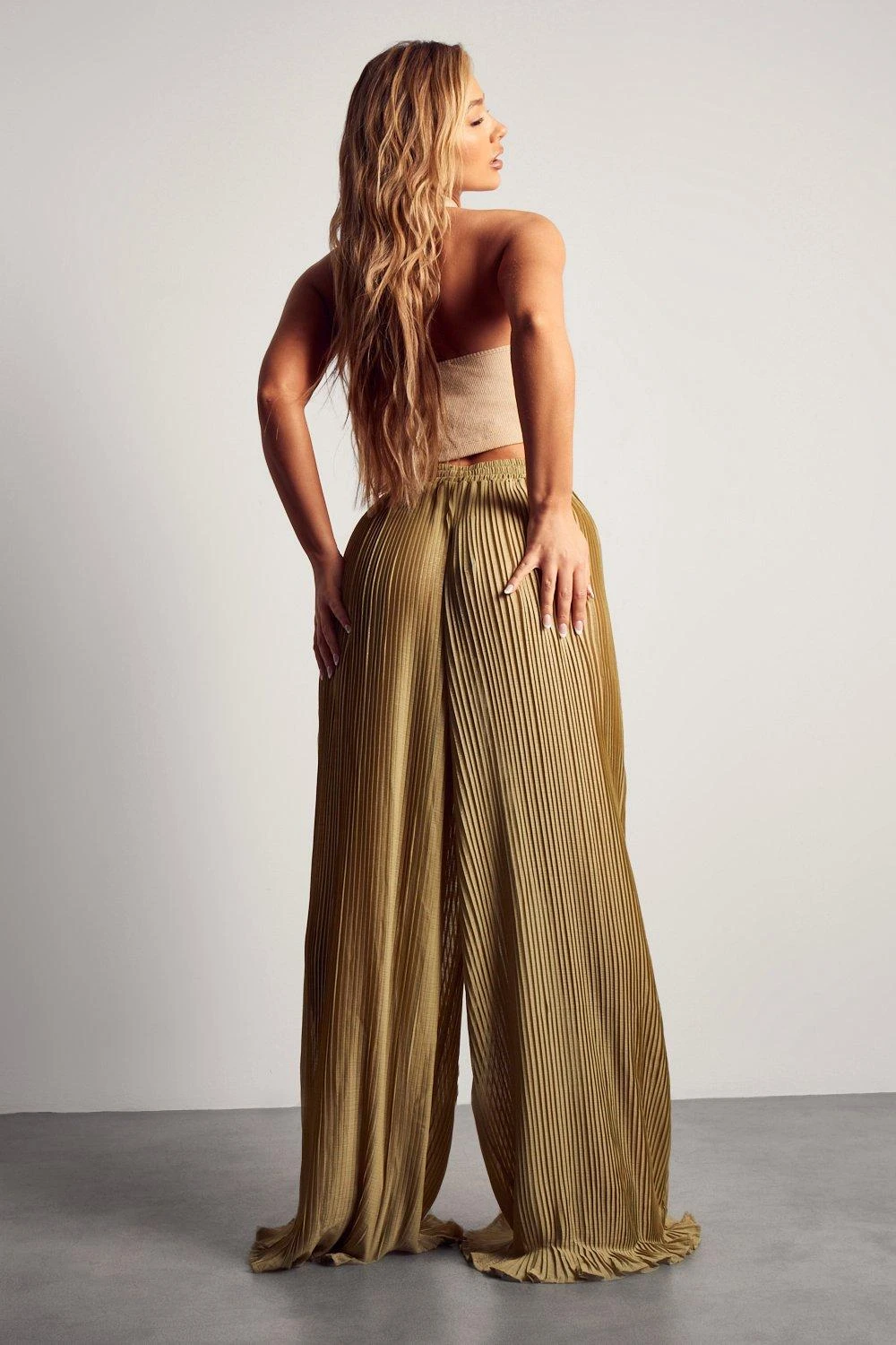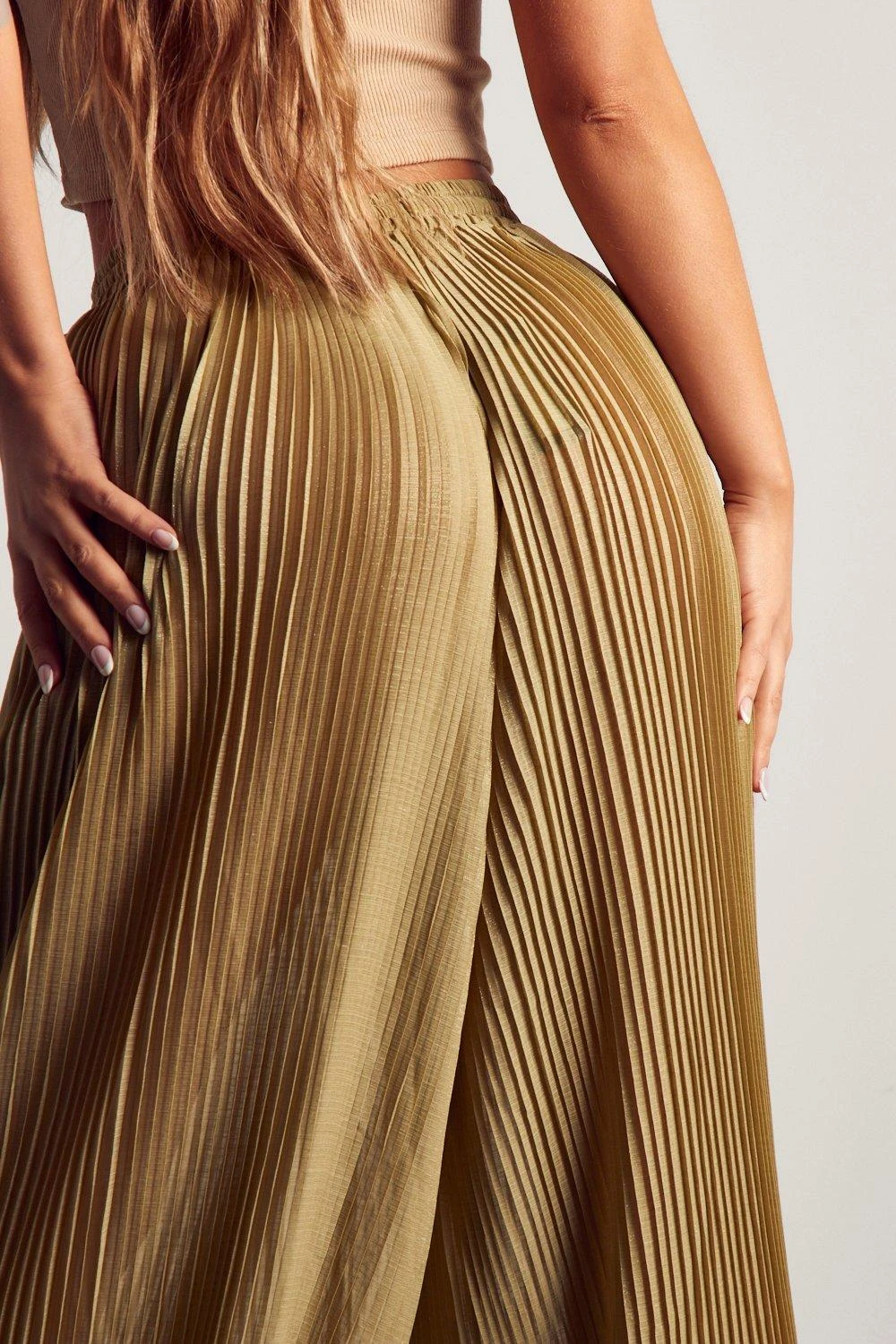 Wide Leg Sheer Glitter Plisse Trouser